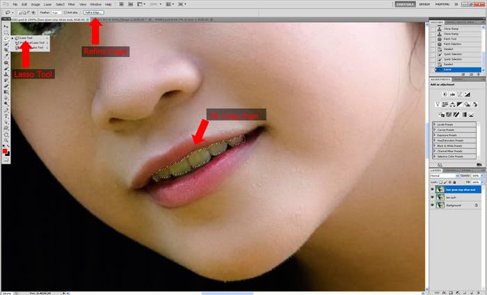- Dùng Lasso Tool vẽ xung quanh đường biên của răng