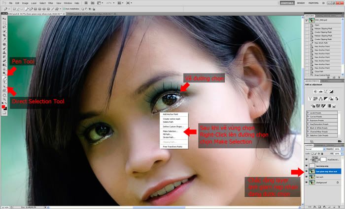 Bước 1 chọn vùng mắt bằng Pen Tool