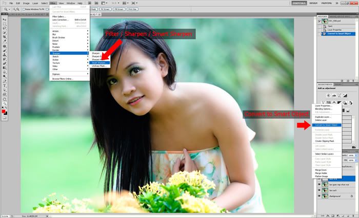 - Vào Filter / Sharpen / Smart Sharpen