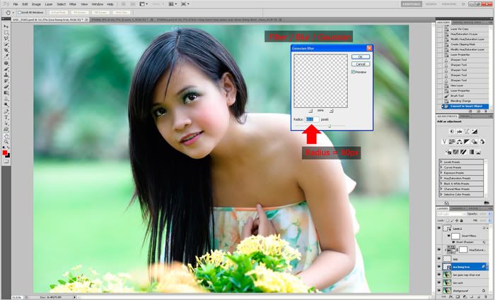 - Vào Filter / Blur / Gaussian Blur đặt Radius = 60 pixels