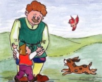 Một người lái buôn có hai con, một gái một trai đều nhỏ, chưa biết đi. Bác trang bị hai chiếc tàu, đầy đủ hàng hóa quý giá, tất cả gia tài, của cải đều ở đó. Bác tưởng lãi to. Không ngờ được tin cả hai tàu bị đắm. Bác đang giàu hóa nghèo, chỉ còn một mảnh đất ở xa thị trấn.